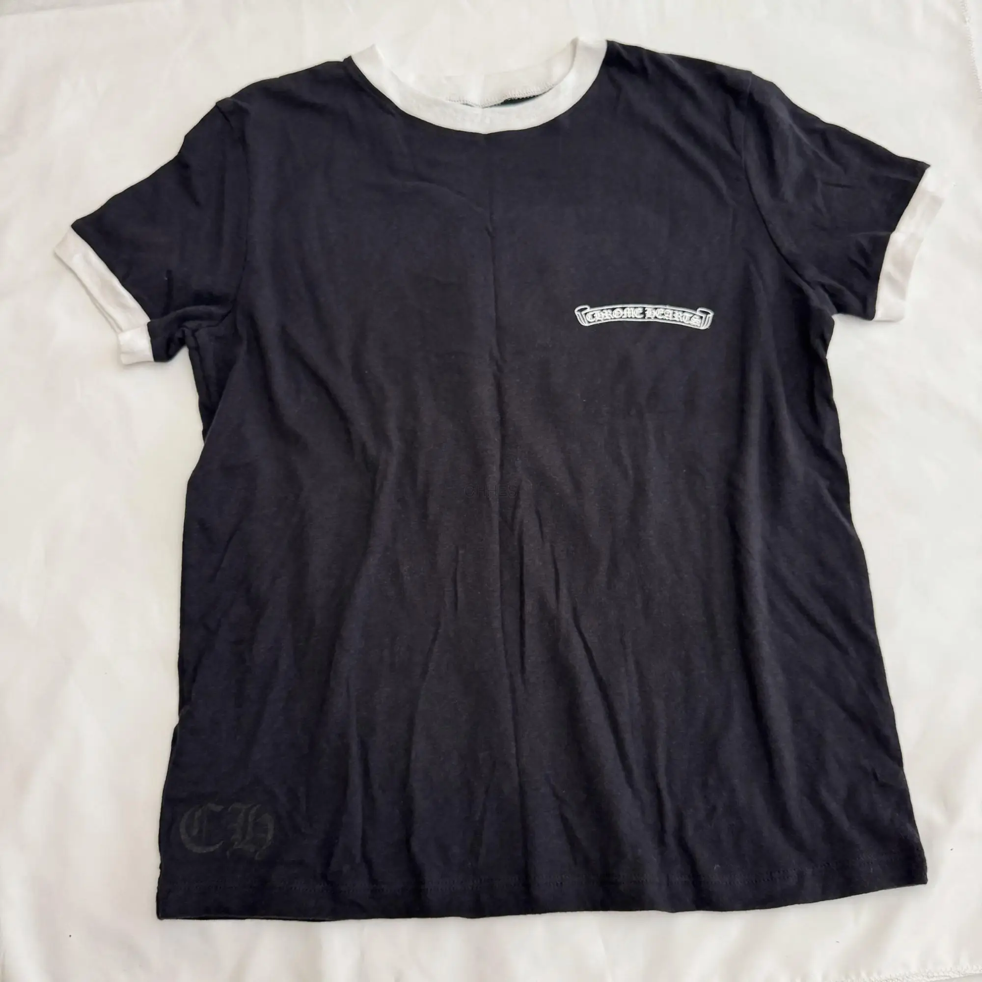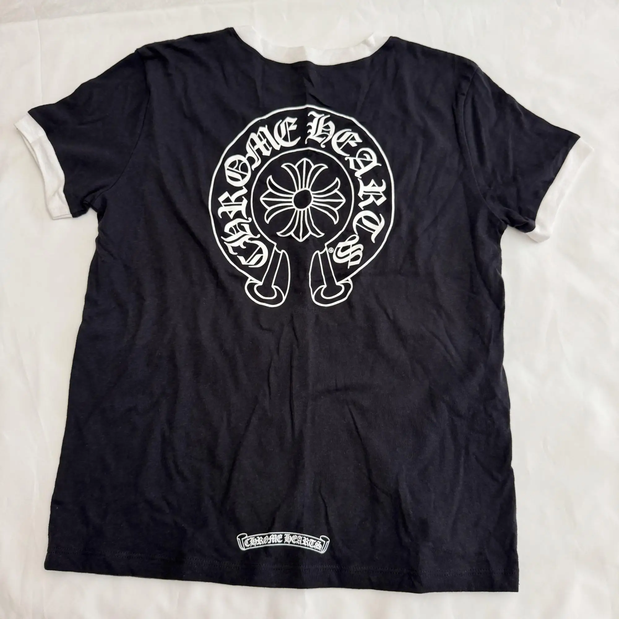 商品描述新款拼接马蹄十字花短袖呢t恤Chrome hearts经典大马蹄T恤
