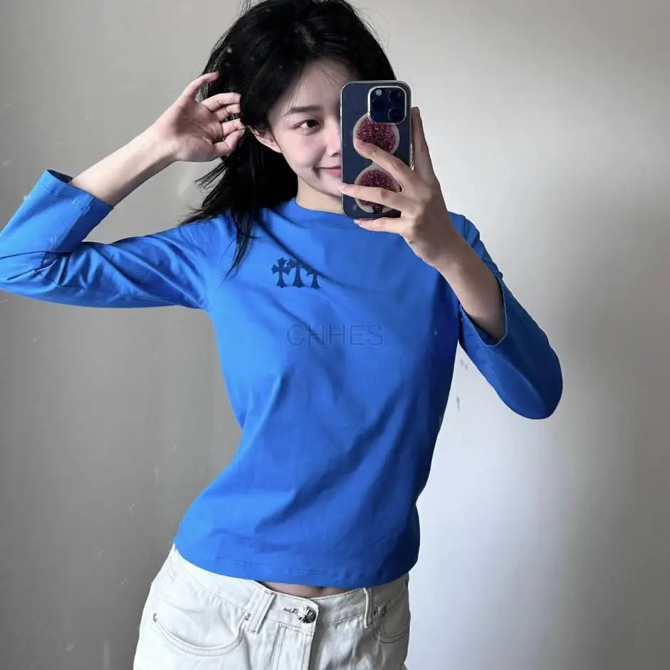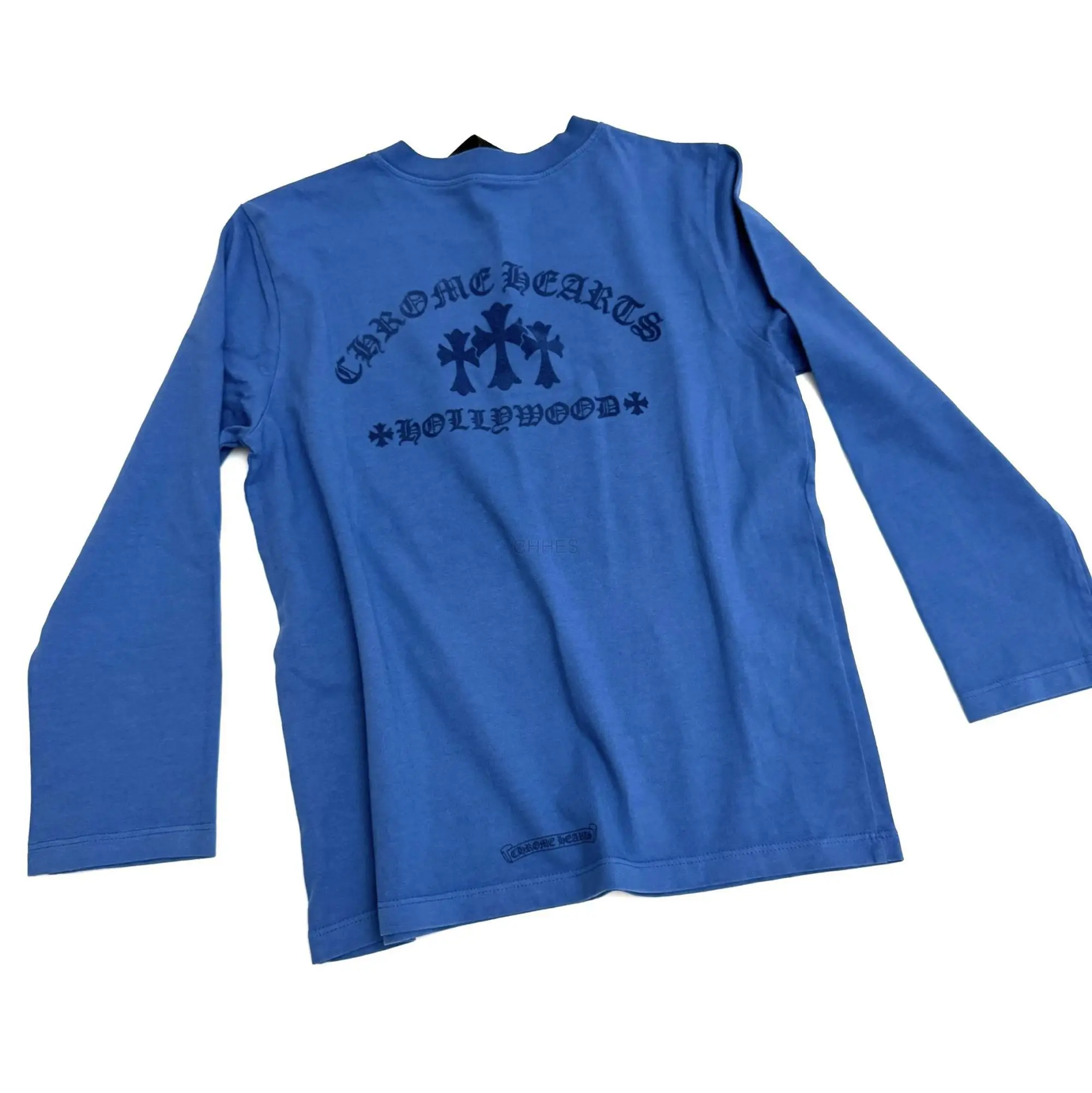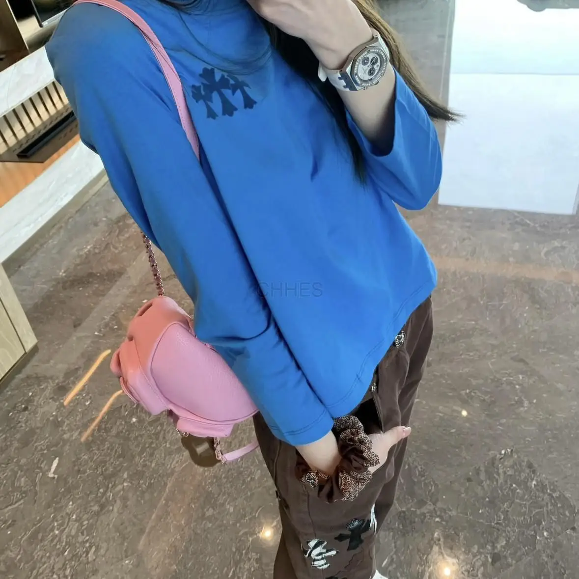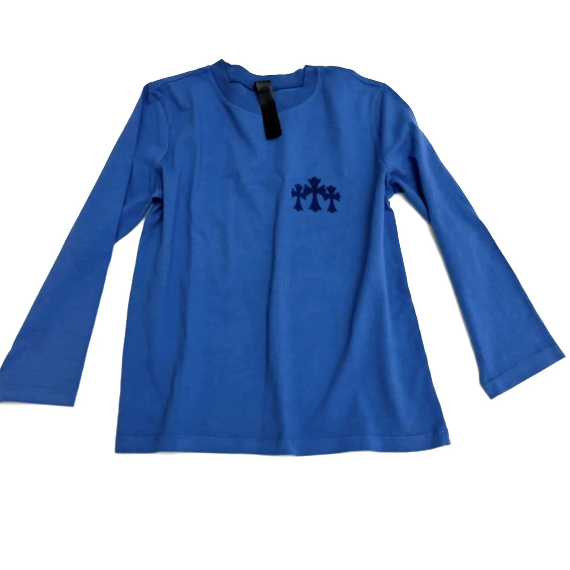 克罗心Chrome hearts 新款蓝色三十字植绒印长袖S码现货